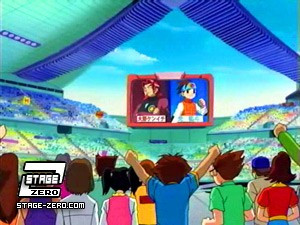 Das verschafft Meiru genug Zeit den Triple-Lance Battle-Chip einzusetzen, der sehr mächtig ist. Colored Man hat absolut keine Chance gegen diesen Angriff und muss sich ausloggen. Im Main Dome sind Fire Man und Rockman weiter hart am Kämpfen. Noch keiner kann die Oberhand für sich gewinnen.