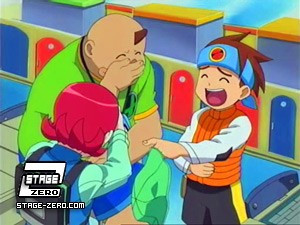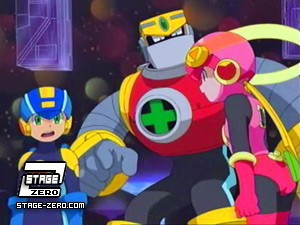 Fire Man holt nun weit aus und entfacht eine gewaltige Feuerwelle. Roll ist aber trickreich und schickt der Flammenwelle einen Aqua Tower entgegen. Mit im Gepäck Guts Man der unfreiwillig mit dem Aqua Tower durch die Flammenwelle rast und Fire Man einen harten Treffer zufügt, so dass er sich ausloggen muss. Der Kampf ist zuende. Roll und Rockman sind dadurch wieder dicke Freunde geworden. Im Gegensatz zu Netto und Meiru die sich wieder in der Wolle haben. Dekao kann da nur noch kommentarlos zuschaun. Aber wie heißt es doch so schön, was sich liebt das neckt sich.