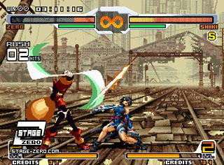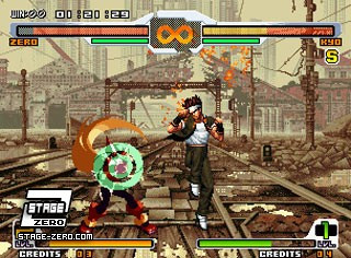 Zero blockt eine Attacke von Kyo Kusanagi